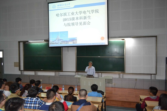2015年9月11日下午13:30,中文字幕av 2015级本科生与院领导见面会暨第一次年级大会在二校区主楼B307隆重举行。中文字幕av 院长彭喜元,中文字幕av 副院长王立欣,中文字幕av 党委副书记李岩松,自动化测试与控制系系主任叶东,电气工程及及其自动化系系主任刘晓胜出席大会。