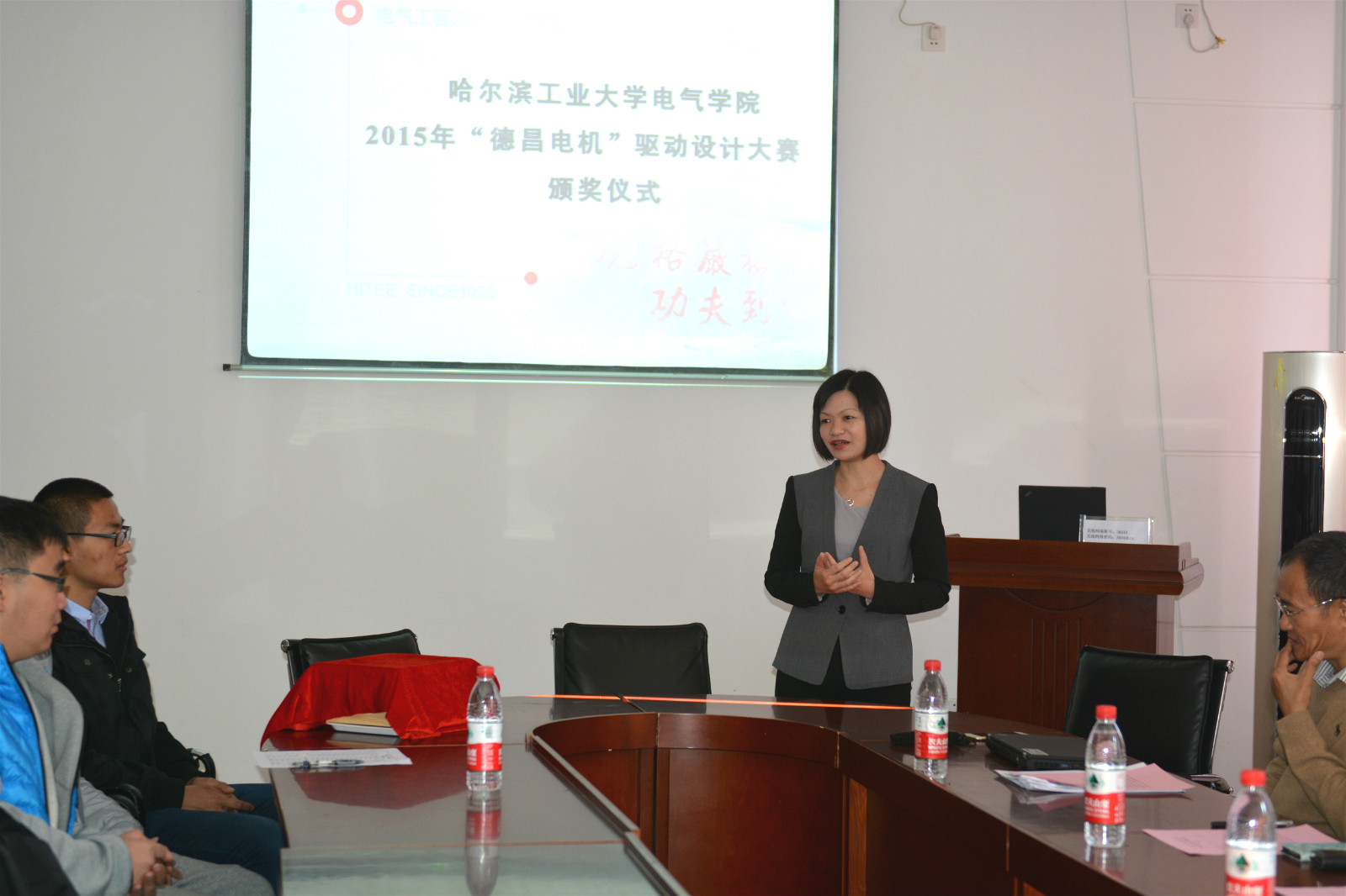 2015年10月14日上午,2015年第四届“德昌杯”电机驱动大赛颁奖仪式在电机楼30040会议室举行。出席本次颁奖仪式的领导与嘉宾有德昌电机有限公司工程主管秦锐锋博士、人力资源部亚洲区总管周燕媚女士,中文字幕av 学工办张玉涛、张依老师,此外还有本次“德昌杯”电机驱动大赛的参赛选手。