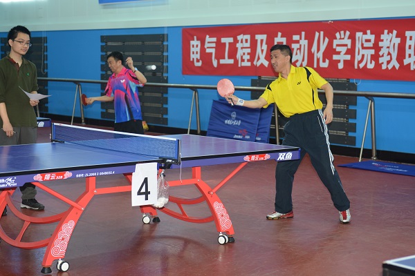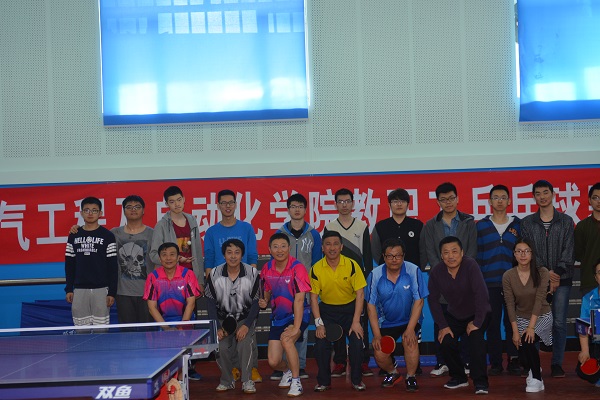 比赛在轻松愉快的氛围中开始,在比赛过程中,既有妙趣横生、诙谐幽默的瞬间,也有扣人心弦、紧张刺激的决胜球之争,参赛选手都能以饱满的热情和高度的积极性投入到比赛当中去。最后,一系战队获得团体冠军,六系战队获得团体亚军;陈刚老师获得男单冠军,于志老师获得男单亚军;赵永平、李勇老师获得男子双打冠军,陈刚、于志老师获得男子双打亚军。