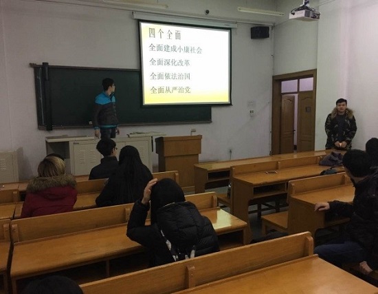 首先,支部书记郭佳皓同学从讲奉献、有作为要有公而忘私的追求,讲奉献、有作为要有敢于担当的精神,讲奉献、有作为要有求真务实的作风三方面进行了讲解。