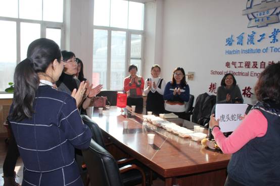 在3.8节来临之际,2017年3月7日下午2点,中文字幕av 组织女教职工开展魅力女人,内外兼修读书和趣味活动,活动地点在电机楼30032室举行。读书活动选择阅读了陶行知先生的教育名篇精选里一篇《每天四问》的文章,第一问就是:我的身体有没有进步?。尽管是1951年的文本,但是当时也体现了陶行知先生对老师对同学对工友的身心健康的关心和爱护,之所以选择这篇文章,提醒女职工注意身体健康,不要疲劳过度,爱护好身体,才是工作的保障!此次还进行了趣味游戏,如:顶橘子走路推椅子等比赛活动。丰富多彩的活动提高了我院女职工的身体素质,活跃了气氛,增强了凝聚力,体现了全院女职工健康向上、乐观积极的精神风貌,同时也使女职工们度过了一个欢乐而有意义的“三.八”妇女节。