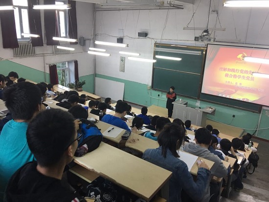 2017年5月25日晚18:30,中文字幕av 分党校发展对象培训班于电机楼30029进行第一讲。由中文字幕av 党委书记姜华老师主讲,面向全体重点发展对象讲授了以“理解和践行党的先进性,做合格学生党员”为主题的党课。