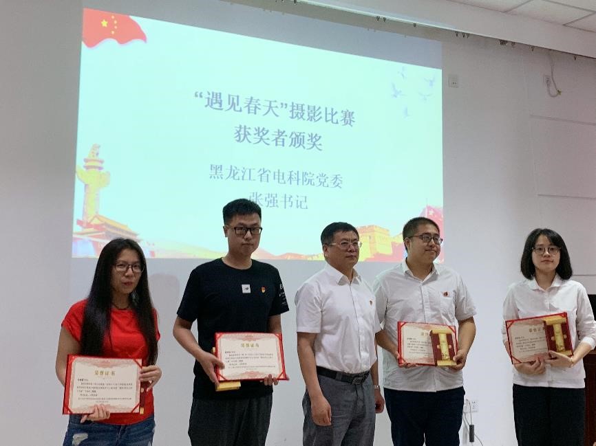 随后,李卫星书记带领各位党员深入学习十九大党章,并由刘晓胜委员领誓与各位党员一同重温了入党誓词。张强书记为双方支部合作开展的联谊活动——“遇见春天”摄影比赛的获奖者颁发了获奖证书和奖品,慕永国书记为电力系统研究所本期毕业的四名博士生颁发了精美的毕业赠礼。